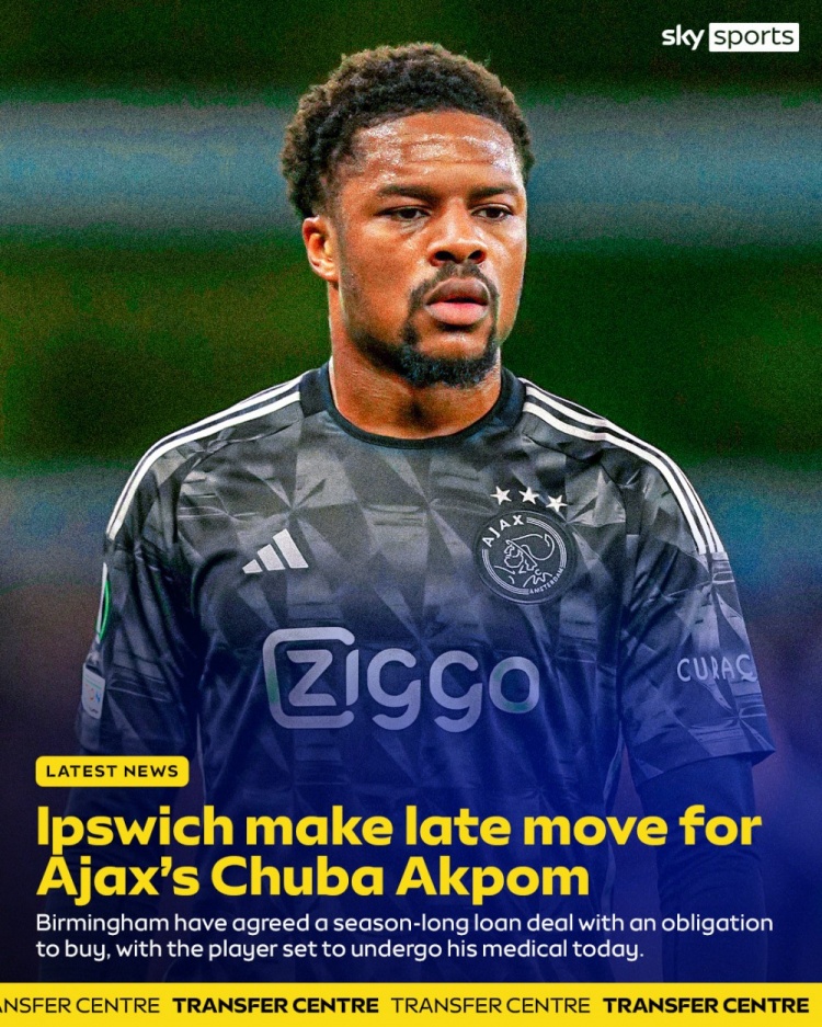 8月4日讯 据太空体育记者Anthony Joseph报说念,伊普斯维奇已原则上与阿贾克斯就时尚朱巴-阿克波姆的转会实现合同,若伊普斯维奇告成升级英超,将以700万英镑强制买断。这笔交往是先租后买,球员可能在过去24小时内领受体检。