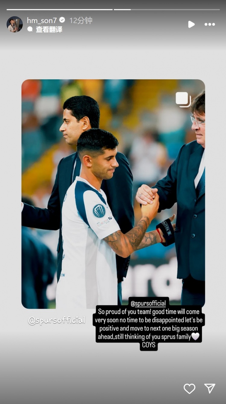 前热刺队长孙兴慜社媒发文饱读吹球队,他晒出罗梅罗的像片,并写谈:“为球队感到相配高傲!好意思好的时光很快就会到来,没未必代去失望,让咱们保握积极的心态,迈向下一个枢纽的赛季。已经在思着你们,热刺宇宙庭。加油热刺!”