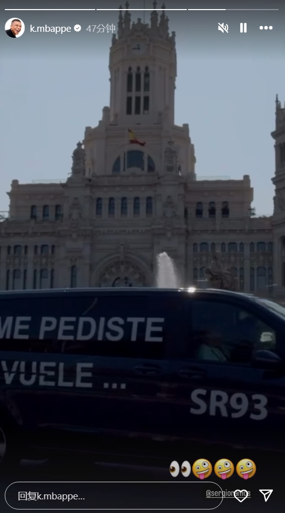 姆巴佩社媒晒印有SR93字样商务车,并@拉莫斯:🤪🤪🤪
