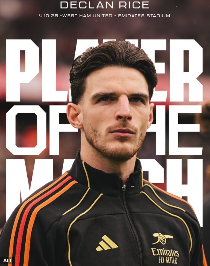 本场比赛赖斯靠近旧主证实出色,为球队在上半场先拔头筹,赛后他也当选阿森纳官方评比出的本场队内最好球员。