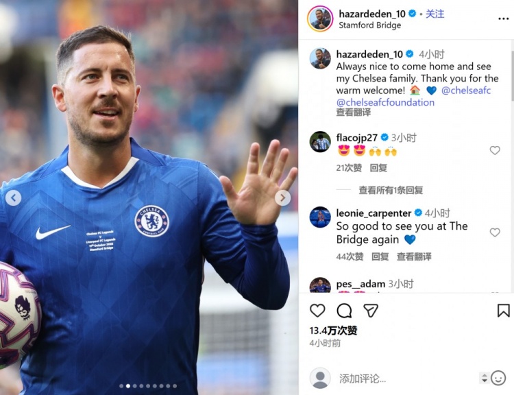 10月15日讯 切尔西名宿阿扎尔日前重返斯坦福桥干预了一场外传赛,在酬酢媒体上,晒出了我方在斯坦福桥的像片并抒发了我方的感恩之情。