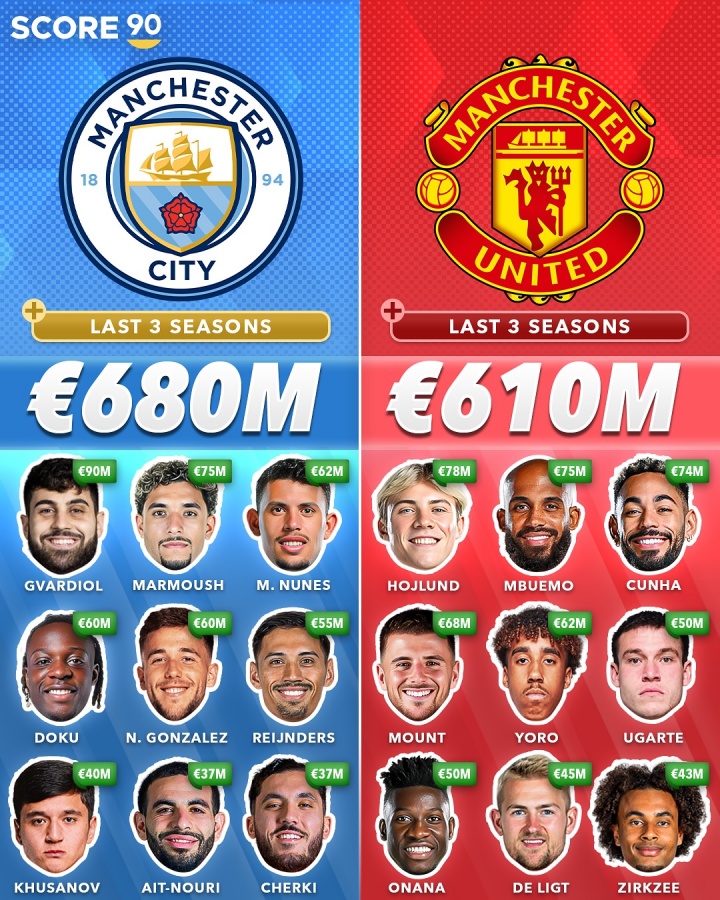 08月05日讯 外媒Score90统计了畴昔三个赛季各大俱乐部在转会阛阓的总干预,英超传统BIG6均排在前七,切尔西是唯独3年总消耗超10亿欧的俱乐部。