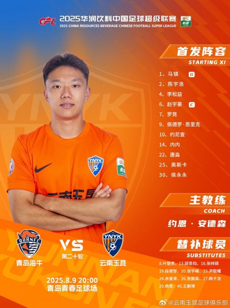 本场比赛首发名单出炉
