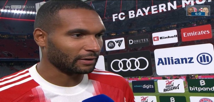 8月23日讯 德甲首轮比赛,拜仁主场6-0打败莱比锡,拜仁后卫若纳坦-塔赛后采取了媒体的采访。
