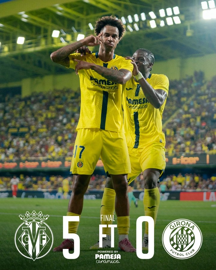 8月25日讯 西甲第二轮比赛,比利亚雷亚尔主场5-0大捷赫罗纳。