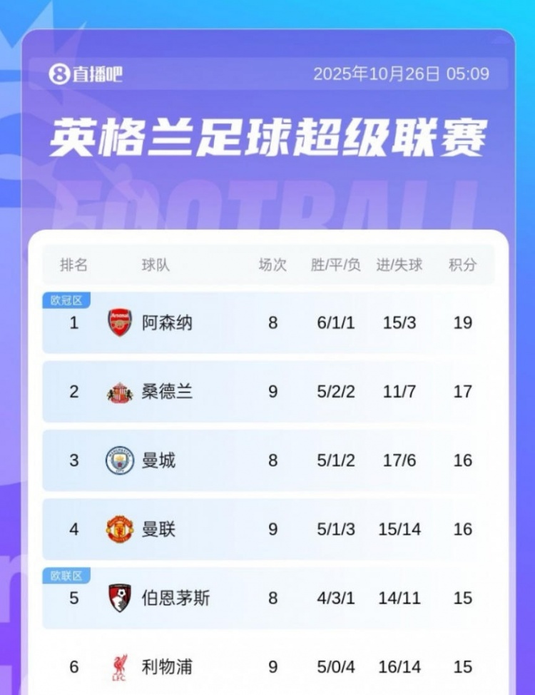 10月26日讯 2025-26赛季英超第9轮,利物浦2-3不敌布伦特福德,碰到联赛4连败。积分榜上,利物浦跌至第6位。
