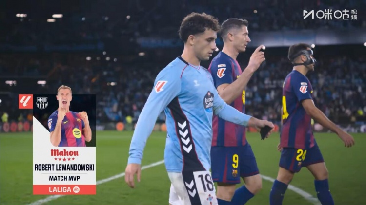 演出帽子戏法!西甲官方:莱万当选塞尔塔vs巴萨的全场最好