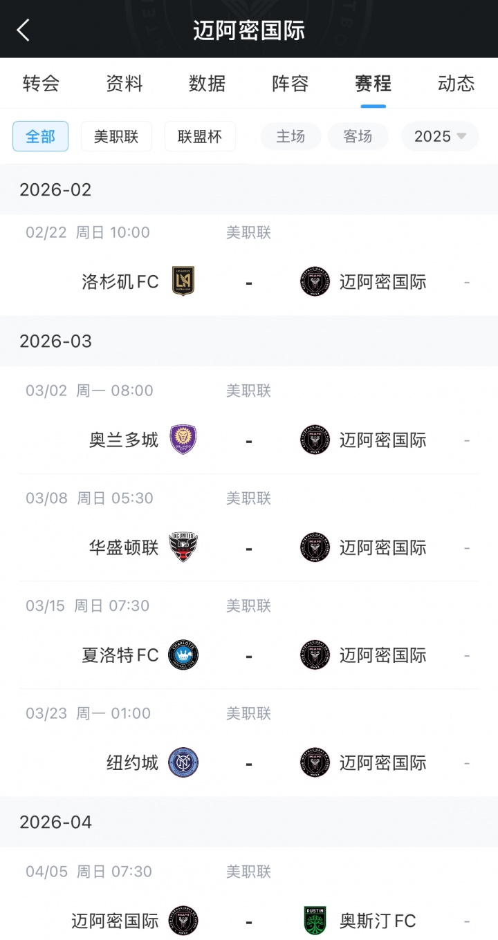 2026赛季,迈阿密将有更多周中比赛。悉数赛季共有七场周中比赛(三主四客),一说念安排在星期三(当地期间)进行。