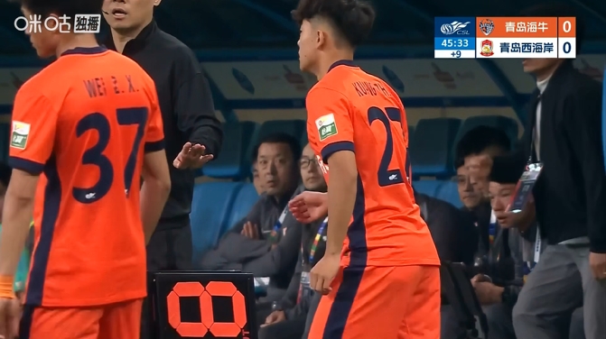 04月17日讯 中超第6轮,青岛海牛vs青岛西海岸。赛事 上半场补时阶段,17岁邝兆镭后备 登场换下负伤 的林创益,邝兆镭也迎来个人中超生涯第二次出场。