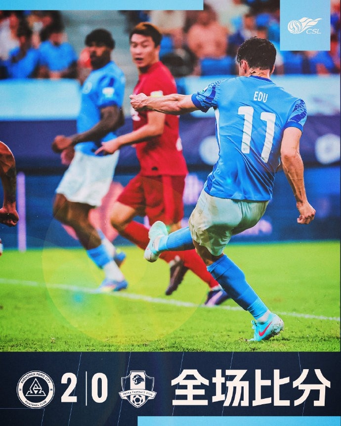 全场比赛结束,深圳新鹏城2:0战胜梅州客家