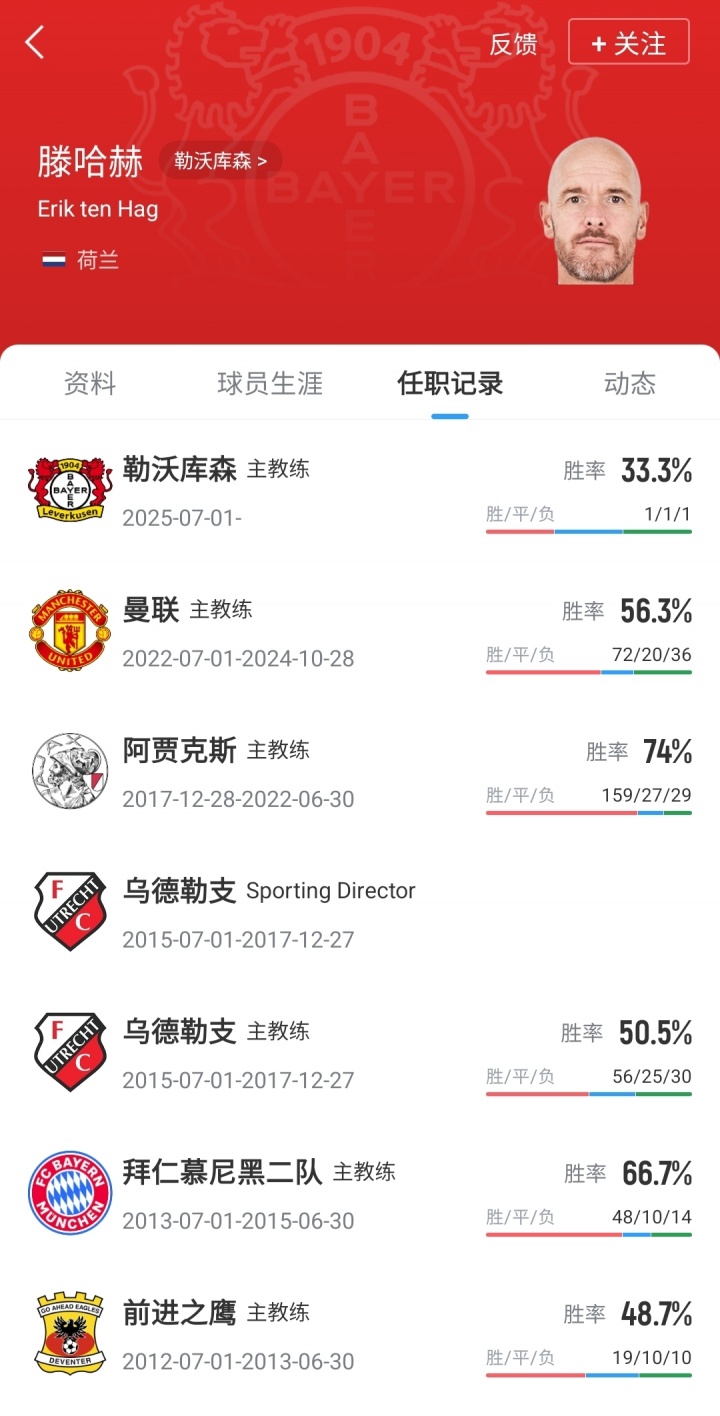 上任62天光速下课!罗马诺独家:勒沃库森解雇滕哈赫,只带队2场