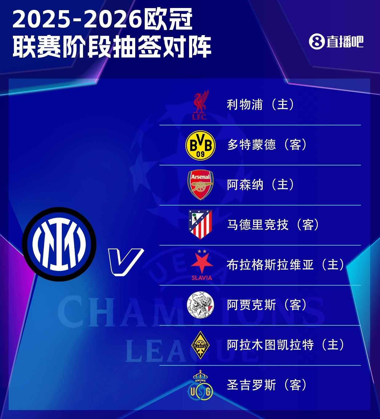 08月30日讯 欧足联官方公布了2025/26赛季欧冠联赛阶段的完整赛程,国际米兰的联赛阶段赛程如下。