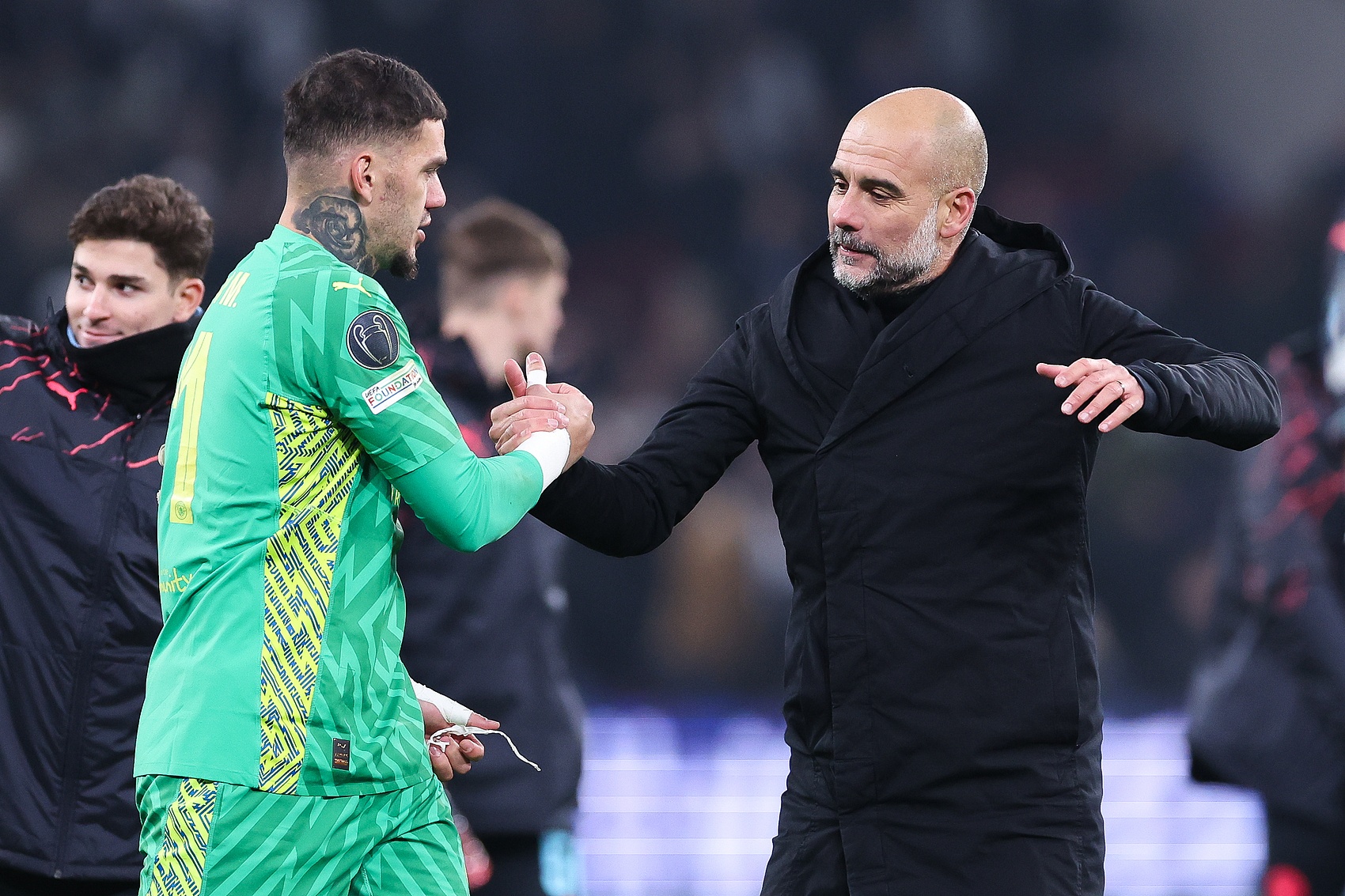 赛季刚刚进行了两场比赛,一号门将的位置仍然悬而未决。埃德森上周投入了熟悉,但由于加拉塔萨雷对其推崇出浓厚兴味,他在对阵狼队的比赛时只被安排在替补席上。尽管此前有报谈称这笔转会行将完成,但巴西门将似乎并不急于离队,周六比赛后他舒坦地离开了伊蒂哈德球场。这笔交游还有许多责任要作念。