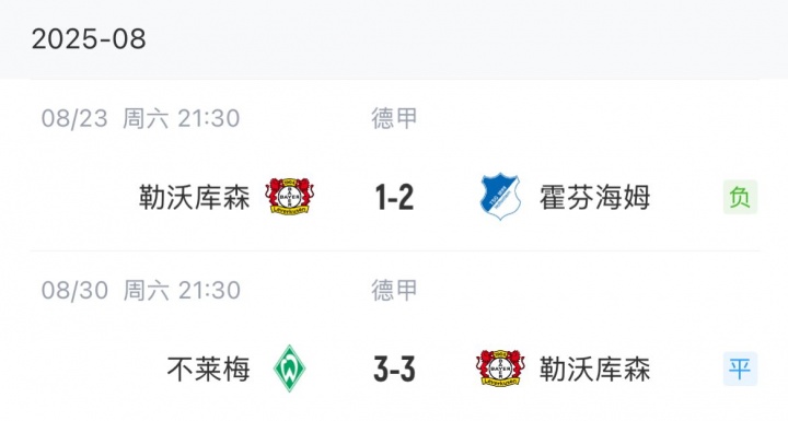 滕哈赫5月26日签约药厂,7月1日负责上任,德甲开局1平1负战绩欠安。滕哈赫上任仅62天,勒沃库森决定罢职他。