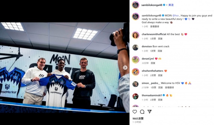 9月2日讯 枪手中场洛孔加也曾官宣加盟汉堡,后者也通过社媒晒照记念。