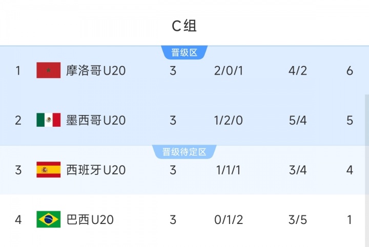 C组第1摩洛哥U20将在后续赛程中,对阵B组第3韩国U20。值得一提的是,C组出局的球队是传统朱门巴西U20,世青赛5冠王。