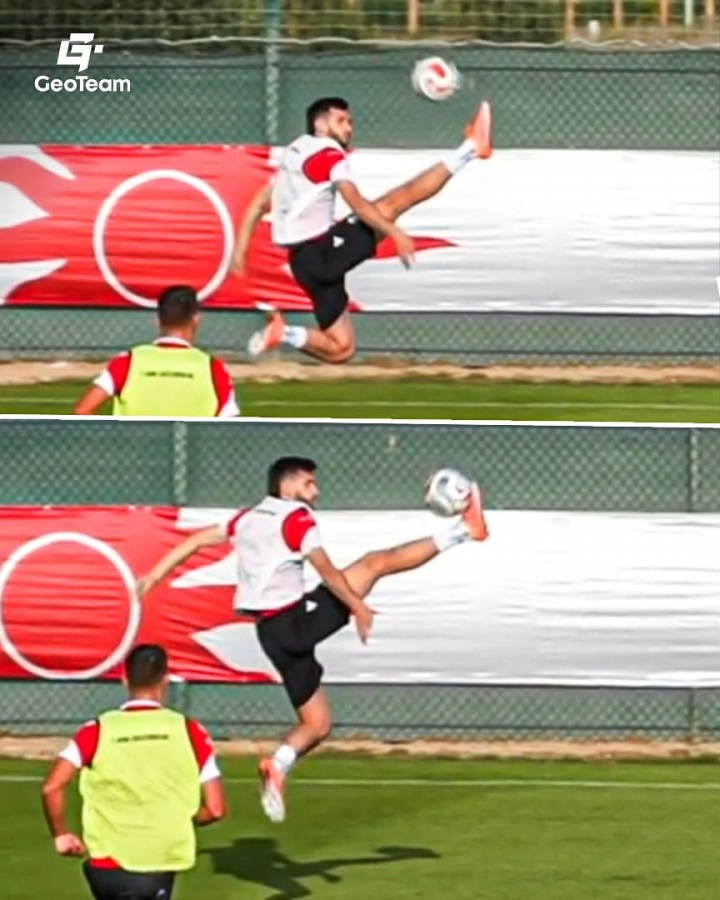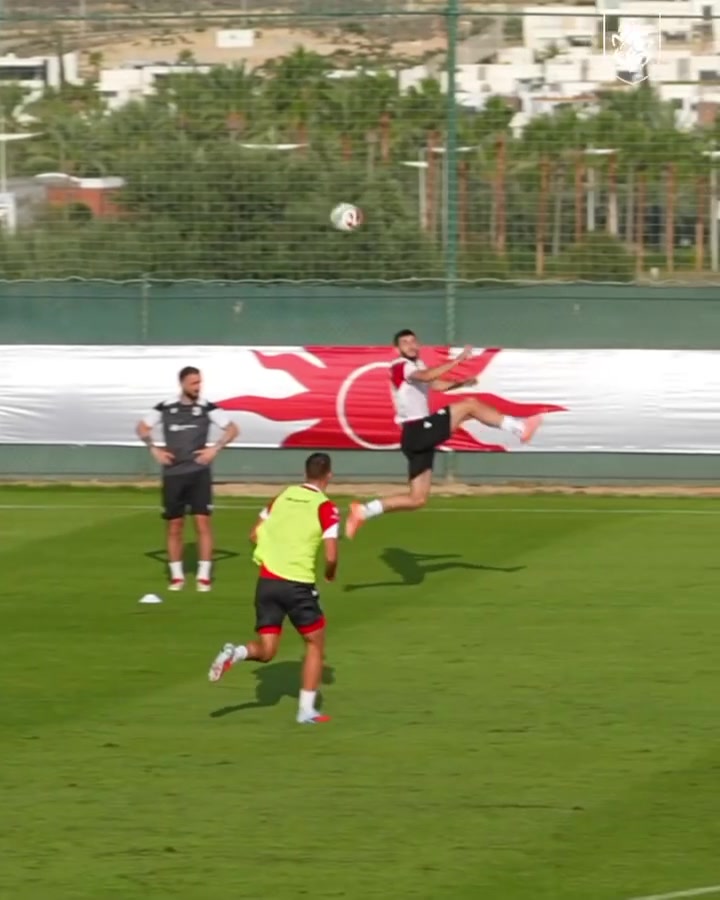 10月10日讯 格鲁吉亚国度队昨日晒出了一段克瓦拉茨赫利亚探员时停球的相片。