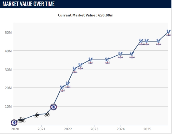 10月17日讯 当天德转更新英超球员身价,25岁水晶宫中卫格伊身价涨至5000万欧,创生计新高。