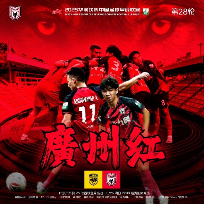 陕西齐集随后推出的海报以“广州红”为题,而红色恰是陕西齐集的球衣格式。陕西齐集官博还为海报配文写谈:“红?🤔 广州红!🔥”