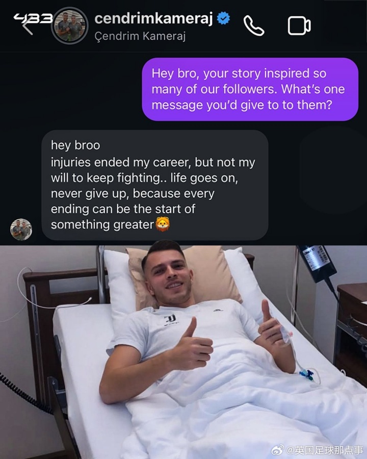 好多东说念主被他的轻浮感动,有东说念主发私信问他有什么话思对球迷们说。他的恢复——“伤病闭幕了我的功绩生活,却无法闭幕我不竭立志的刚劲。生命永收敛息,毫不轻言烧毁,因为每一个至极都可能开启更伟大的征途。”