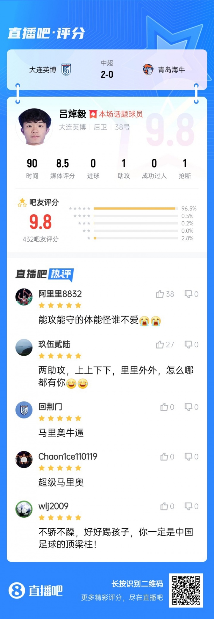 1、吕焯毅(大连英博)
