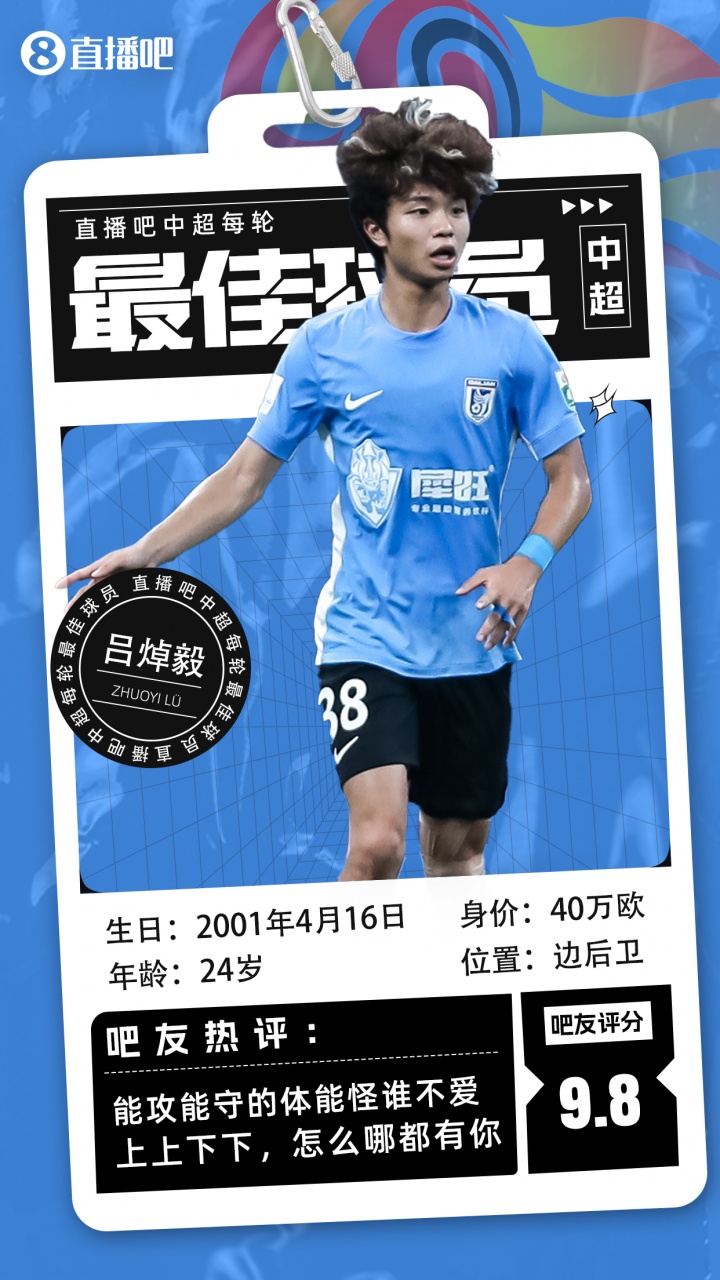【】中超第19轮最好球员评比出炉,大连英博“马里奥”吕焯毅当选最好!他在本轮比赛中孝顺精彩的曲线助攻并造点,匡助大连英博2-0海牛收成收效。