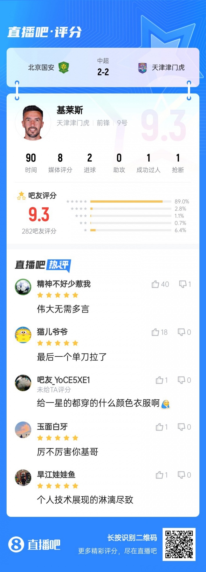 【】中超第四轮最好球员:基莱斯当选,为了天津长久贫瘠!