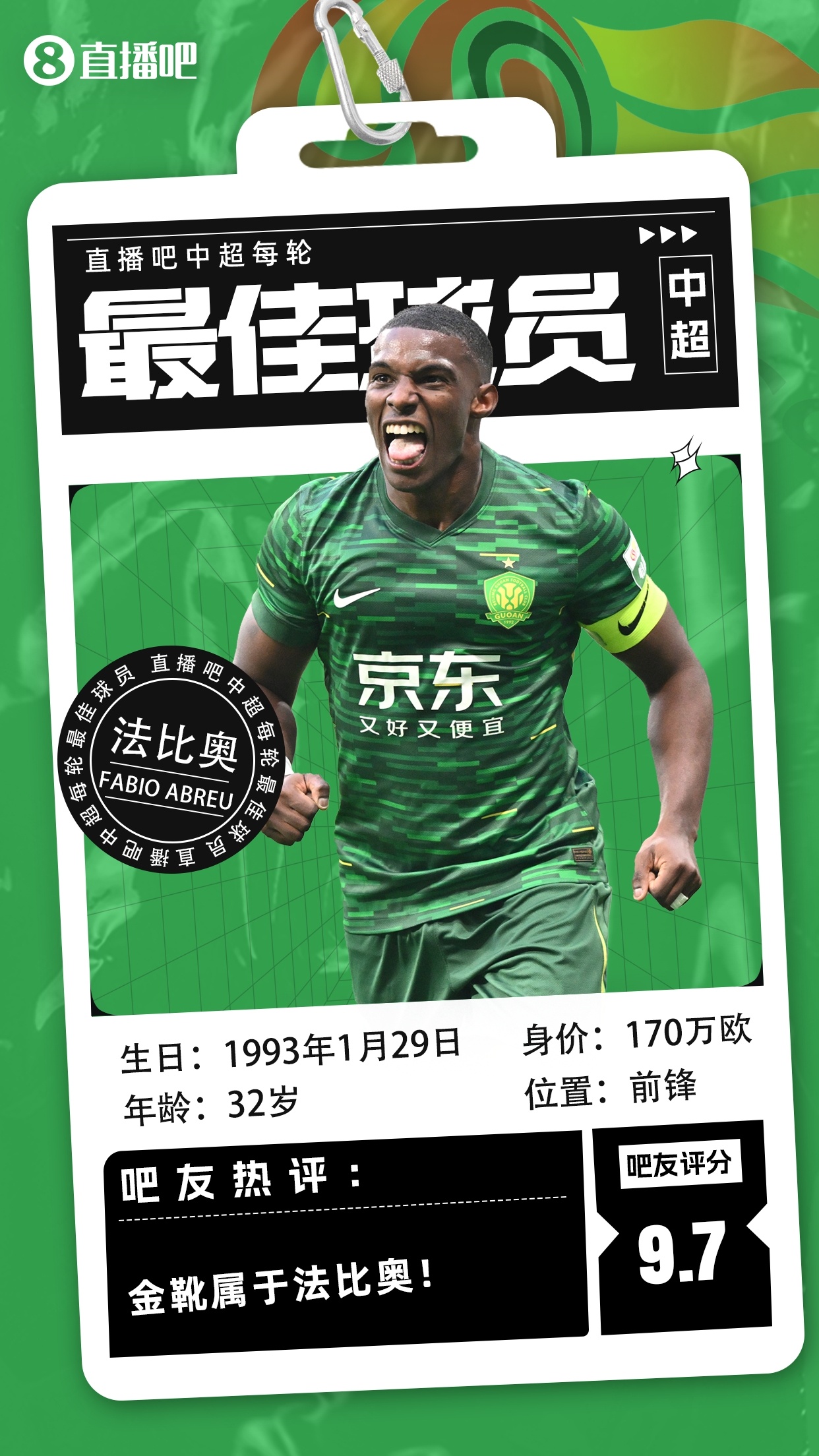 为什么莫得评比?就平直当选,因为法比奥大四喜夺得联赛金靴!