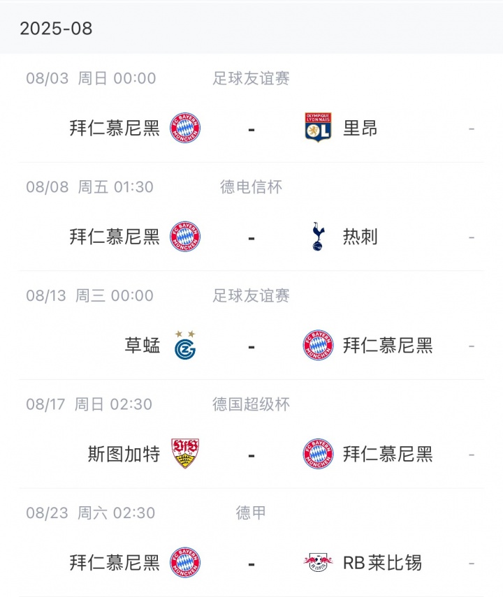 拜仁赛程如下↓