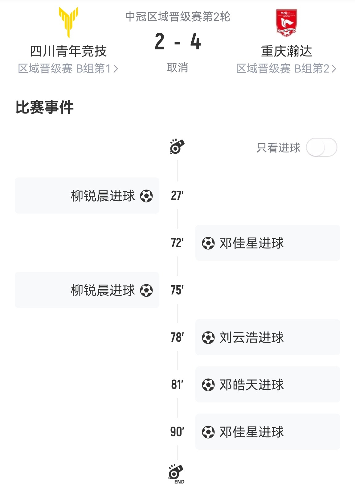 6月20日,中冠官方发布通报,6月3日中冠四川后生竞技 2-4 重庆瀚达的比赛中,经内行组评定,四川后生竞技队在该场比赛中非简单比赛(萎靡比赛)。
