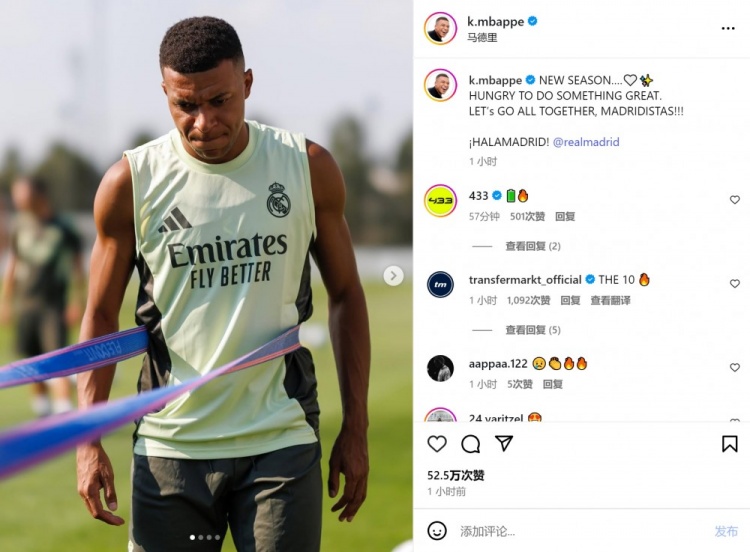 姆巴佩社媒晒出历练像片,配文:“新赛季…渴慕作念一些伟大的事情,让咱们一皆死力,皇马东谈主!HALA MADRID!”