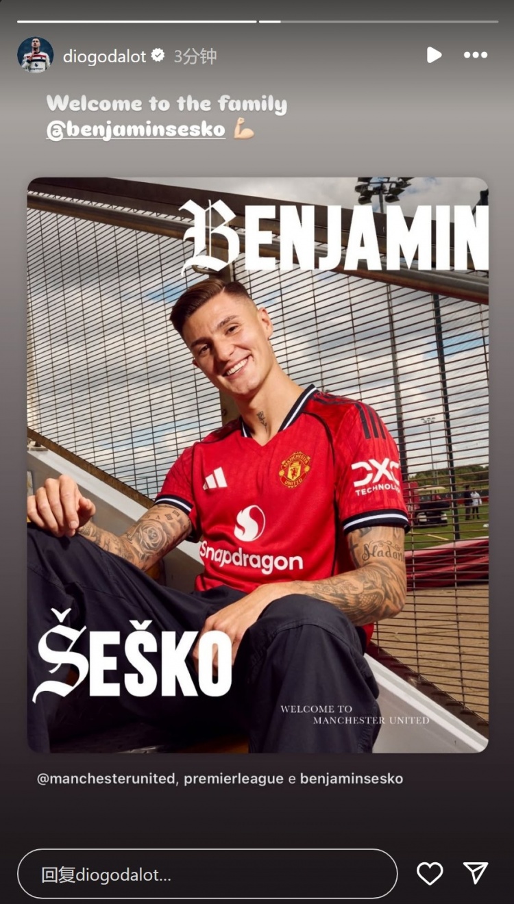 8月9日讯 莱比锡先锋塞斯科加盟曼联,达洛特更新社媒动态,接待他的到来。