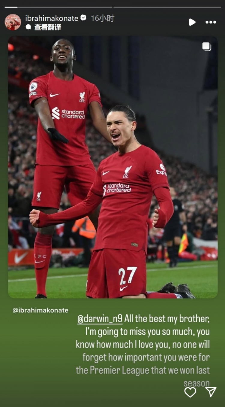 科纳特告别努涅斯:我会很念念念你,没东谈主会健忘你对问鼎英超的孝顺