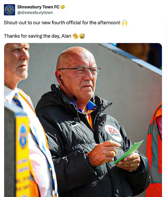 什鲁斯伯里在社媒上发布相片并写说念:“向咱们今全国午的新第四官员致意!谢谢你救场,艾伦。”