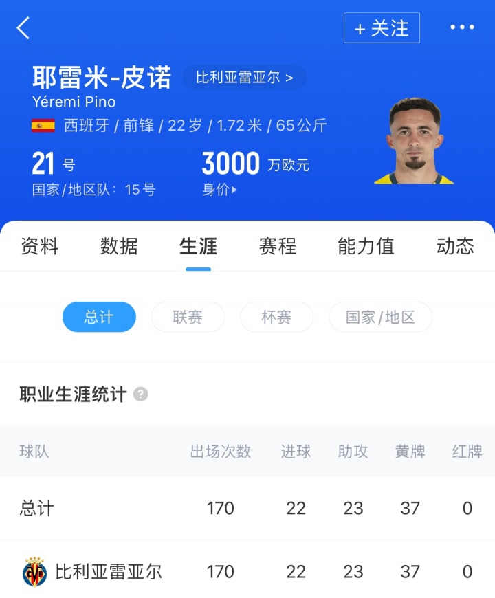 皮诺现年22岁,西班牙籍时尚。他在上赛季为比利亚雷亚尔出场35次,取得4粒进球和9次助攻。现在其德回身价预估3000万欧元。
