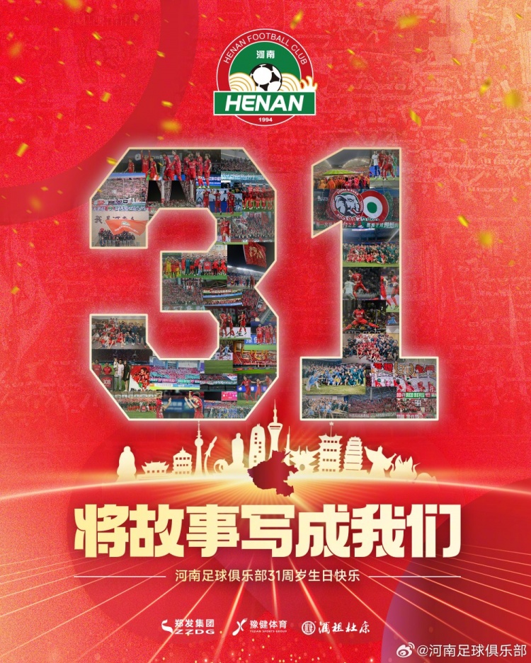 三十一年风雨兼程,大宗的诚实与醉心,托举着河南足球,续写对于绿茵梦念念的故事。今天,让你我会聚力量,祝愿俱乐部31周岁寿辰快意,将故事写成咱们