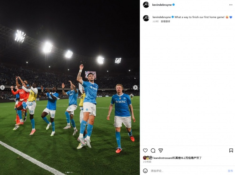 本场比赛德布劳内首发登场,他在个东谈主社媒也晒出赛后与队友庆祝告捷的相片,配文写谈:“以如斯棒的格式赢得赛季主场首胜!”