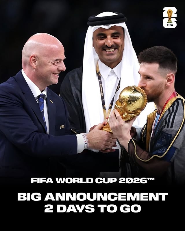 外洋足联主席因凡蒂诺更新社媒,晒出梅西在卡塔尔宇宙杯夺冠后接过大约神杯的图片,并预报两天后会有关键音信晓示。