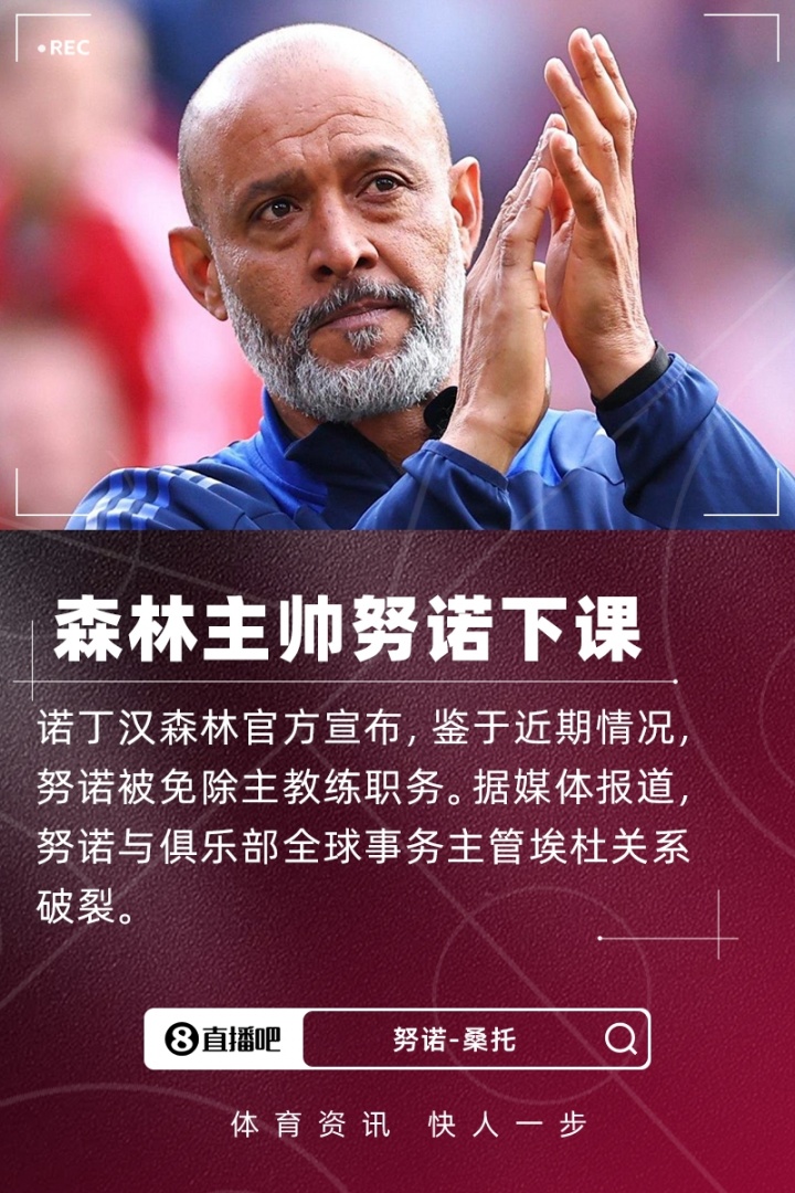 诺丁汉丛林官方音信,主帅努诺下课!新赛季英超,丛林开局1胜1平1负,暂以4分排第10名。据媒体报谈,努诺与俱乐部群众事务主宰埃杜连系破裂。