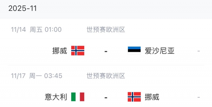 挪威6连胜以18分领跑I组,净胜球高达26个。意大利少赛一场落伍挪威6分,净胜球为7个。