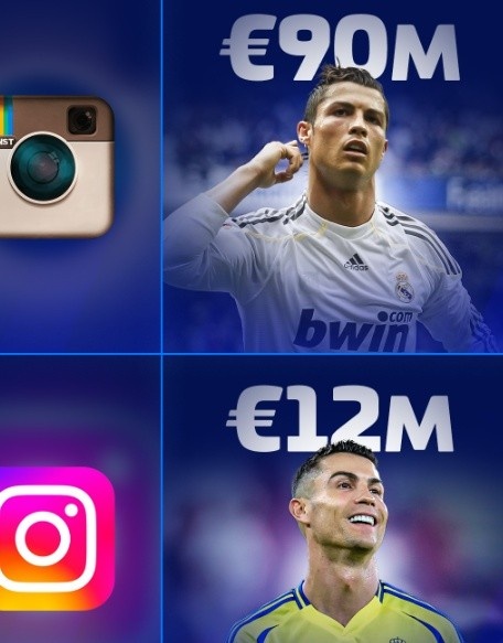 德转盘货球星历史身价:C罗曾9000万欧当前1200万 梅西当今1800万