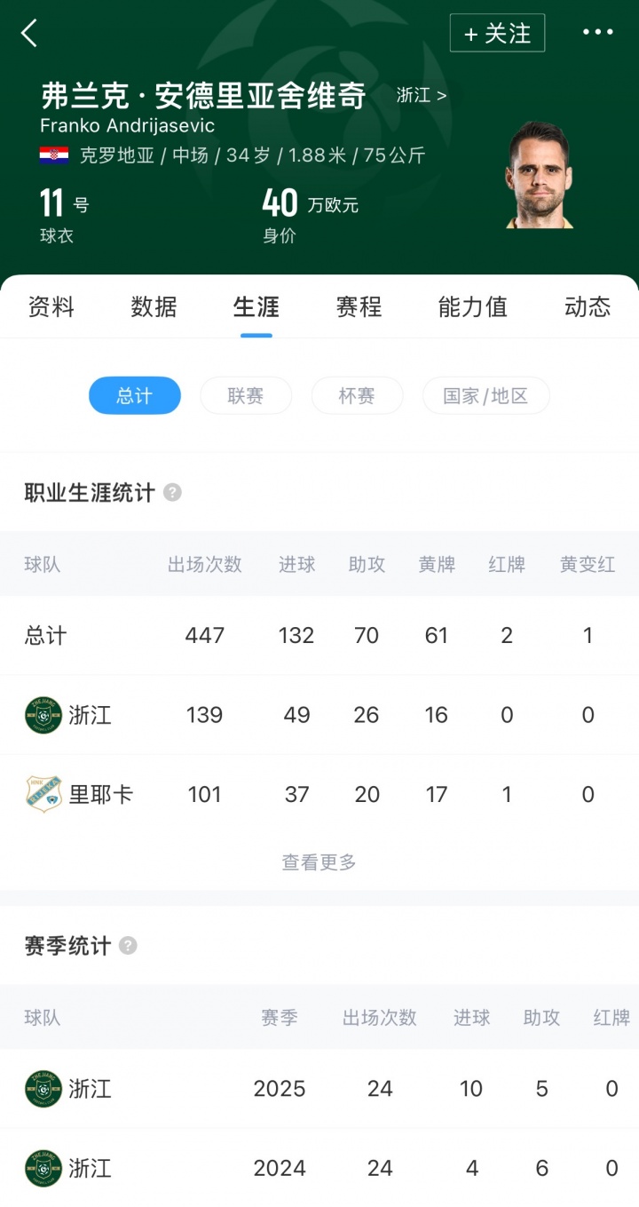 俱乐部向弗兰克暗示深远感谢与诚实祝颂,铁打的营盘,活水的兵,而弗兰克是浙江FC历史里醒方针星,他是咱们的队史外助出场王,是球队当之无愧的灵魂东谈主物,亦然浙江足球血脉里永恒奔腾的江河。